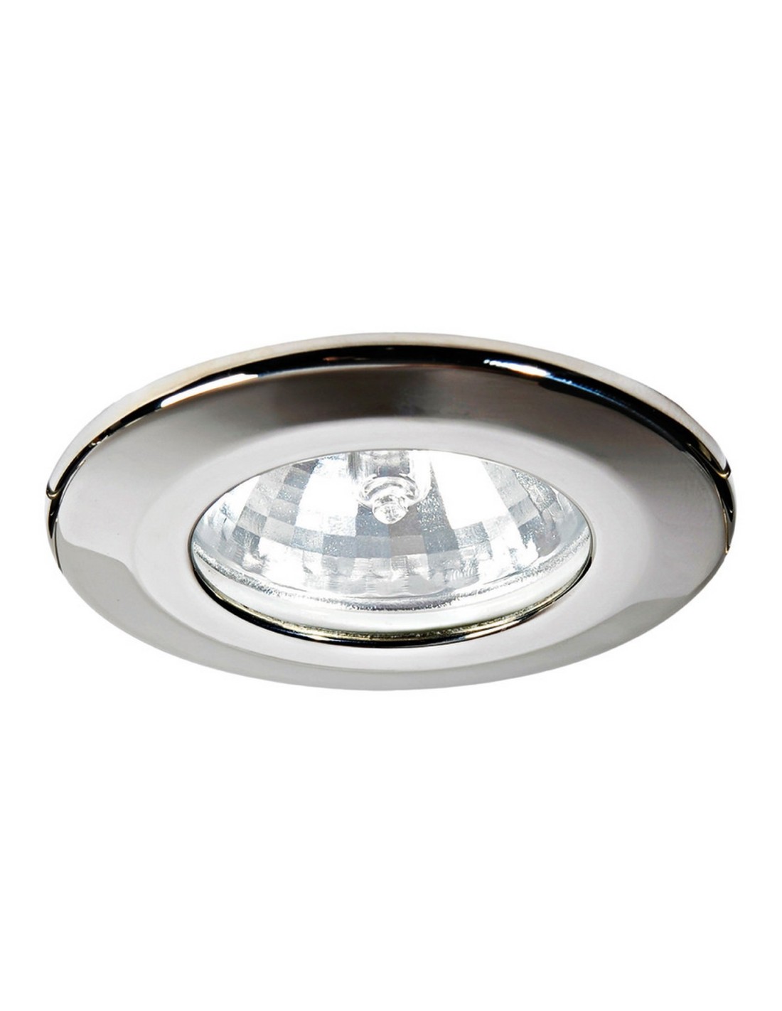Corpo in acciaio inox. Lente in vetro. Parabola dicroica. Sistema di fissaggio con molle interne.