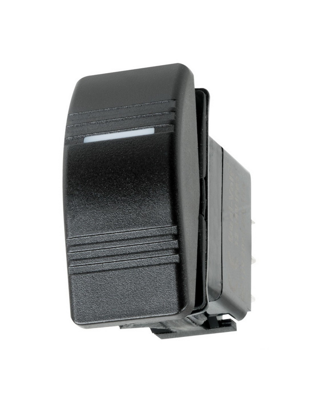 Richiedono per l’installazione un foro rettangolare da 21,5x36,8 mm. Capacità max 20 A / 12 V. Bascula rigida e spia luminosa a LED che si illumina attraverso la bascula attivando il contatto.