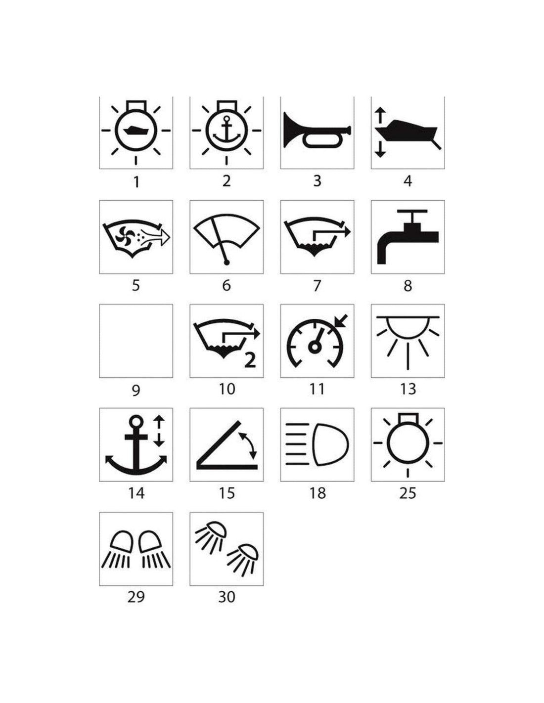 Simboli incisi a laser. Bascule OVAL per interruttori Marina TOP con simbologia illuminata