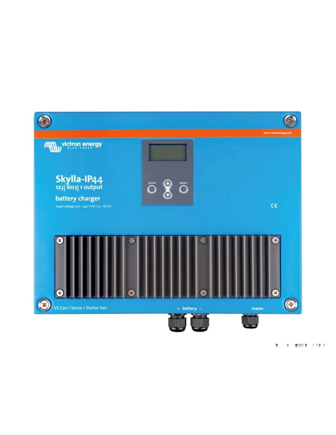 Versione Splash-proof resistente agli spruzzi. Carica a 3 standi IUoUo con microprocessore che adatta perfettamente il tipo di carica richiesto dalla batteria. Tre uscite indipendenti per caricare più batterie insieme. Sistema automatico di compensazione della temperatura con sensori interni, ventilazione forzata, protezione scheda elettronica con resina acrilica, protezione contro corto circuiti, sovratensione, inversione polarità. Compensazione caduta tensione del cavo. Modalità battery-safe: se per abbreviare i tempi di ricarica si opta per una corrente di carica alta e per una tensione di assorbimento superiore, lo SKYLLA eviterà i danni di gassificazione limitando in automatico la velocità di aumento della tensione. Modalità accumulo: se la batteira non lavora per 24 ore, la tensione di mantenimento si abbassa fino a 2,2 V/cella, limitando al minimo la formazione di gas. La tensione viene riportata a livello "assorbimento" una volta alla settimana per ristorare la batteria. Questa funzione impedisce la solfatazione e la stratificazione dell'elettrolita. Il perfetto controllo della tensione rende il caricabatteria utilizzabile come alimentatore. Interfaccia CANbus, con possibilità di mettere in parallelo tramite cavo RJ45 più caricabatteria. Pannello di controllo a LCD.