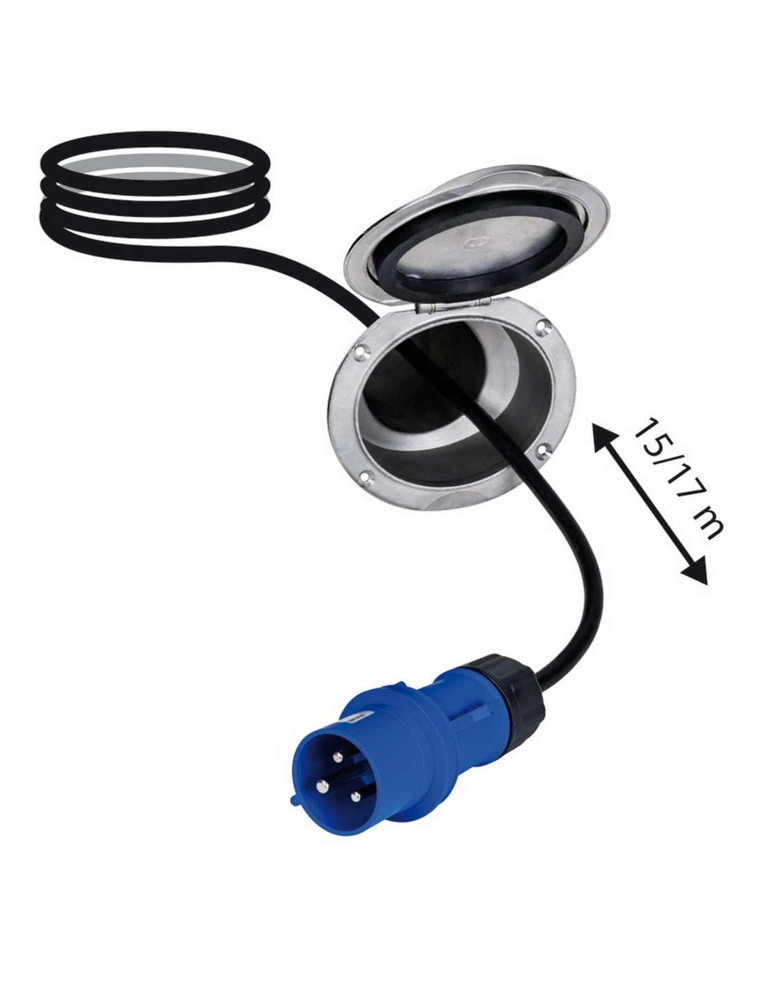 Innovativo sistema di cavo elettrico da banchina a scomparsa nello scafo. Grazie ad un dispenser avvolgibile automatico, è possibile estrarre il cavo elettrico da un box e collegarlo direttamente alla colonnina della banchina. Per riporlo basta sbloccare la tenuta del cavo e aspettare che l’avvolgitore riarrotoli automaticamente il cavo estratto. Una volta riposto il cavo, il sistema scompare all’interno dello scafo richiudendo un elegante box in acciaio inox lucidato a specchio che garantisce una tenuta ermetica IP44. L’allineamento tra avvolgitore e boccola può orientarsi in ogni direzione con un angolo massimo consigliato di 80°. Disponibile in due versioni con differente cavo da portata 16A e 32A. Avvolgitore interno fornito con staffe di fissaggio orientabili.