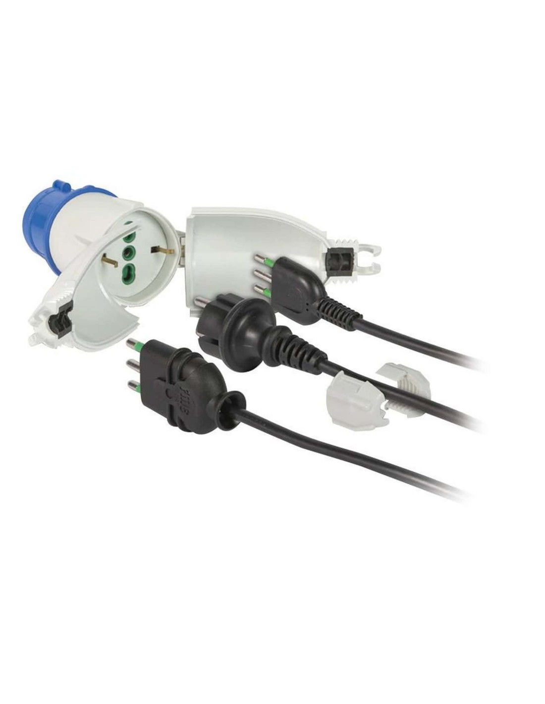 Trasforma le prese da banchina (femmine 16A) a prese civili (Schuko 3 poli piccole o 3 poli grandi).