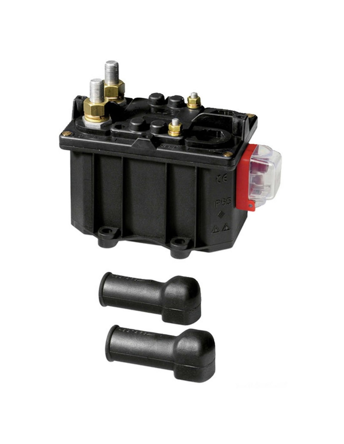 Stacca il positivo della batteria tramite un interruttore ON-OFF separato. Rimane aperto o chiuso senza consumo di corrente fino al successivo impulso. Si può collegare un led luminoso che ne indichi lo stato aperto o chiuso ed é possibile installarli in parallelo per comandare più gruppi di batterie contemporaneamente. Completo di comando manuale di emergenza. Grado di protezione IP 56, contatti in rame argentato M 12.