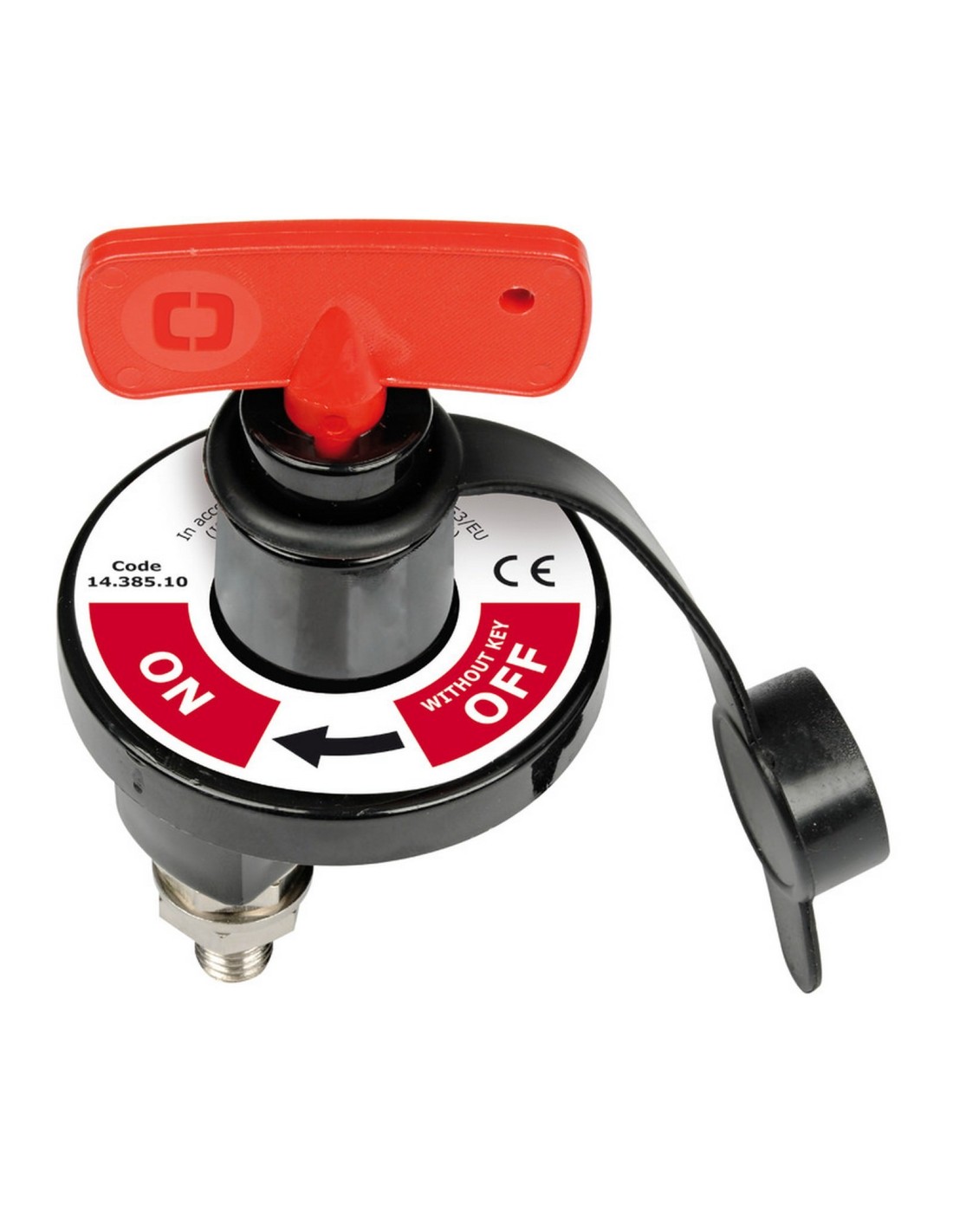 In policarbonato nero con fissaggio su flangia. Completo di cappuccio stagno in PVC e doppia chiave. Omologato CE secondo la direttiva 2013/53/EU (ISO 8846 MARINE - EN 28846). Dispositivo obbligatorio da montare su cavo positivo. Due chiavi incluse.