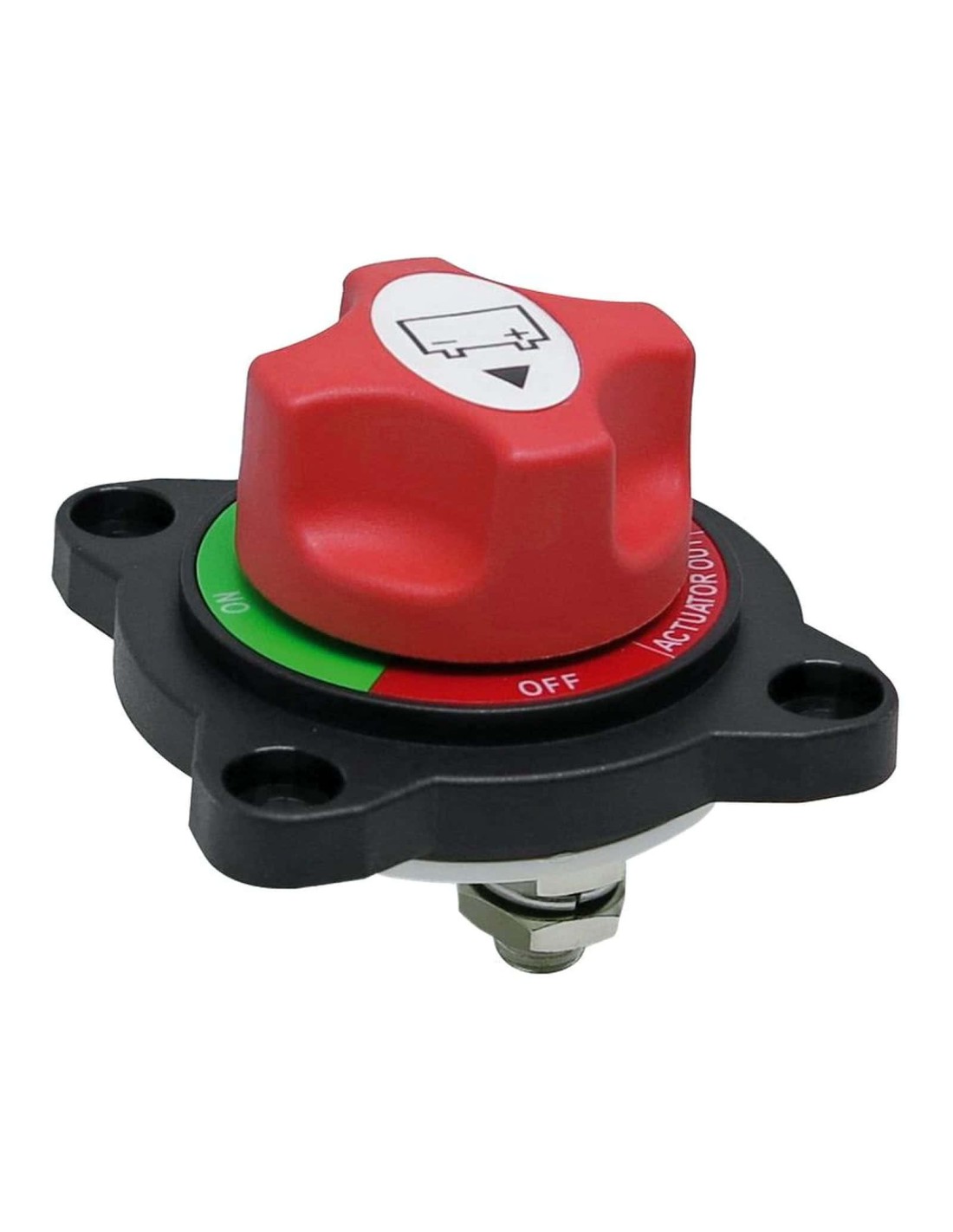 In policarbonato con fissaggio su flangia. Posizione ON-OFF-OUT che permette di sfilare il pomello come antifurto.