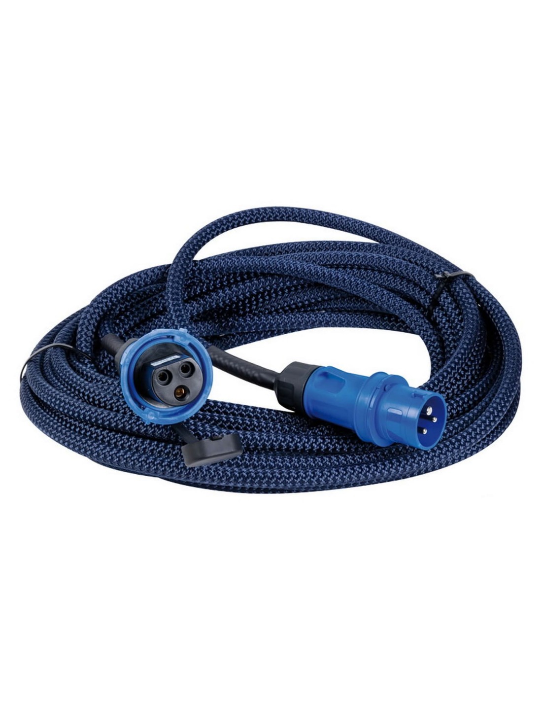 Il cavo elettrico è rivestito con una speciale calza in poliestere che gli conferisce una protezione dall'usura e un aspetto esteticamente nautico. Dotato di spina Cruiser da 16A lato barca e spina industriale tripolare per lato banchina.