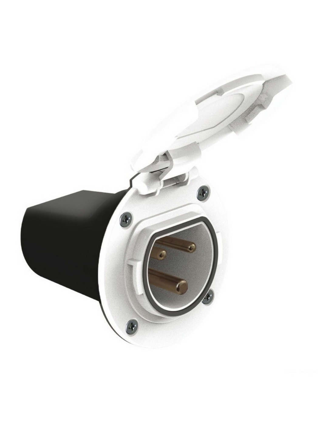 Presa e spina nautica per cavo elettrico banchina da 32A - 220V. Realizzati in PA6, dotata di contatti ad alta resa energetica e tappo di chiusura IP67. La spina è disegnata per garantire una impugnatura ergonomica e la ghiera rotante permette di assicurarla saldamente alla presa in barca con una chiusura stagna IP67, mentre il tappo in gomma garantisce una tenuta IP44 quando non è collegata. Il design pulito e le ridotte dimensioni permettono di poter installare comodamente la presa in qualsiasi punto del pozzetto. Conforme agli standard europei di sicurezza IEC 60309-5.