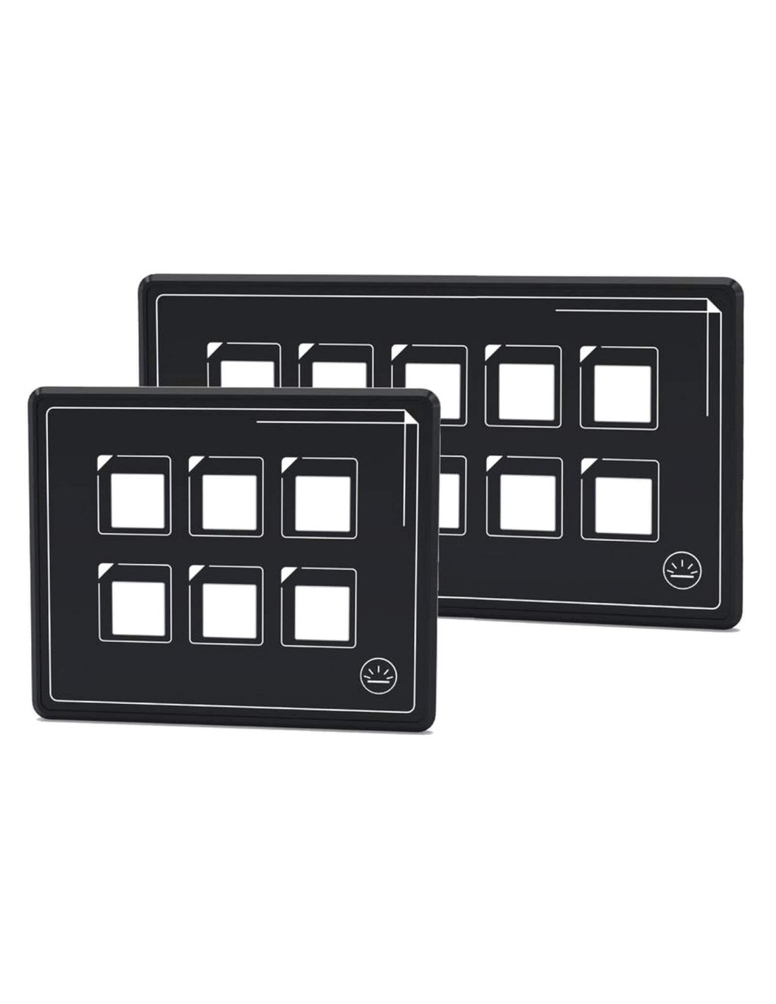 Sistema formato da: - Pannello di comando a membrana ultra piatto con retroilluminazione interruttori touch + spia-LED su ogni funzione attiva. IP67. In dotazione 60 sticker con vari simboli da applicare agli interruttori. Possibilità di riprogrammare ogni interruttore passando da ON-OFF a (ON)-OFF. - Cavo di collegamento Micro-USB standard, lunghezza 1 m tra pannello e Control Box. Può essere sostituito con qualsiasi cavo Micro-USB. - Control Box con fusibili da 10 A autoresettabili.