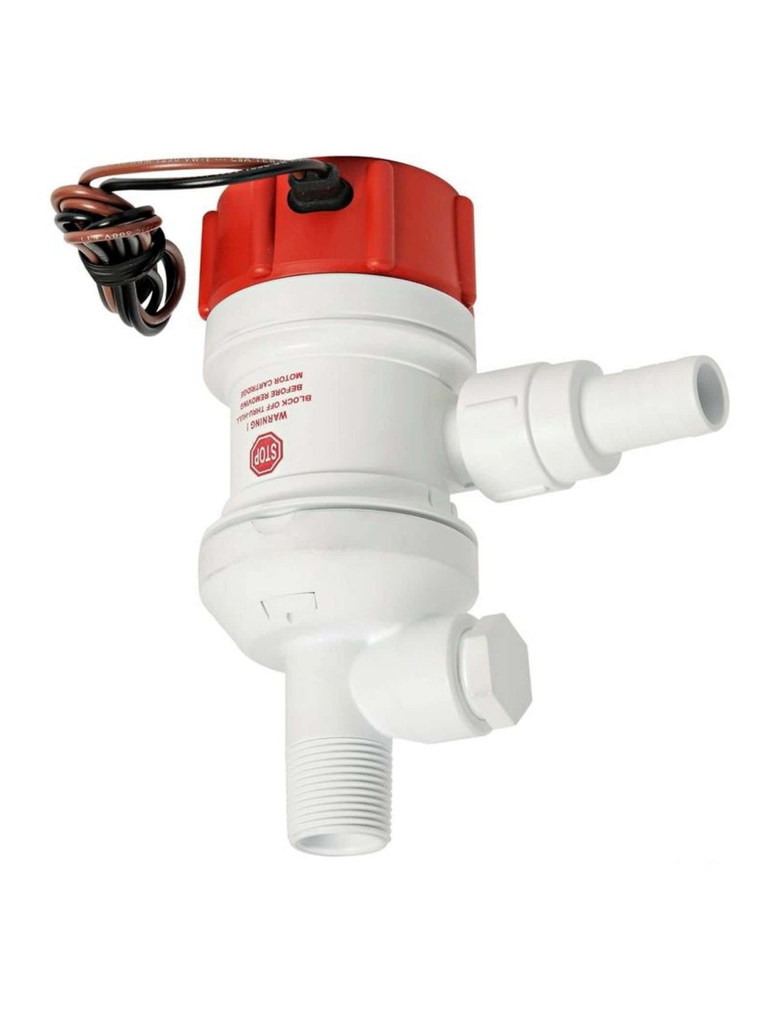 Serve come pompa ricircolo acqua nelle vasche del pescato e delle esche e come attacco per le pompe lavaggio coperta abitualmente installate sulle barche dei pescatori. Un solo foro in carena per collegare 2 pompe.