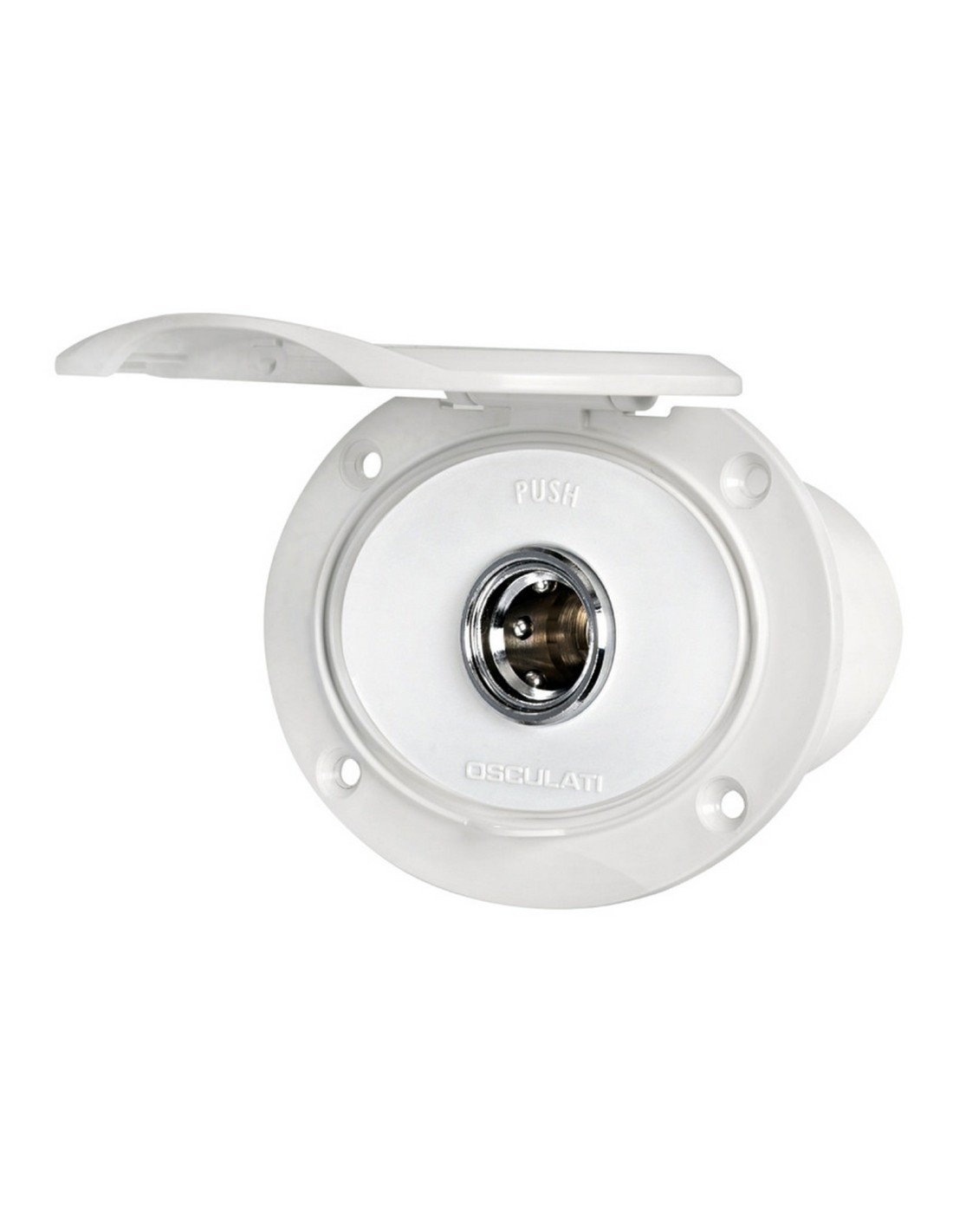 Si collega alla rete idrica di bordo (acqua dolce) o alla pompa Washdown (acqua salata) e mantiene in pressione la linea. Il tubo di lavaggio si innesta a scatto nella presa e fa automaticamente partire la pompa. Box in ASA resistente agli UV con inserto in acciaio inox AISI 316, meccanismo in ottone cromato.