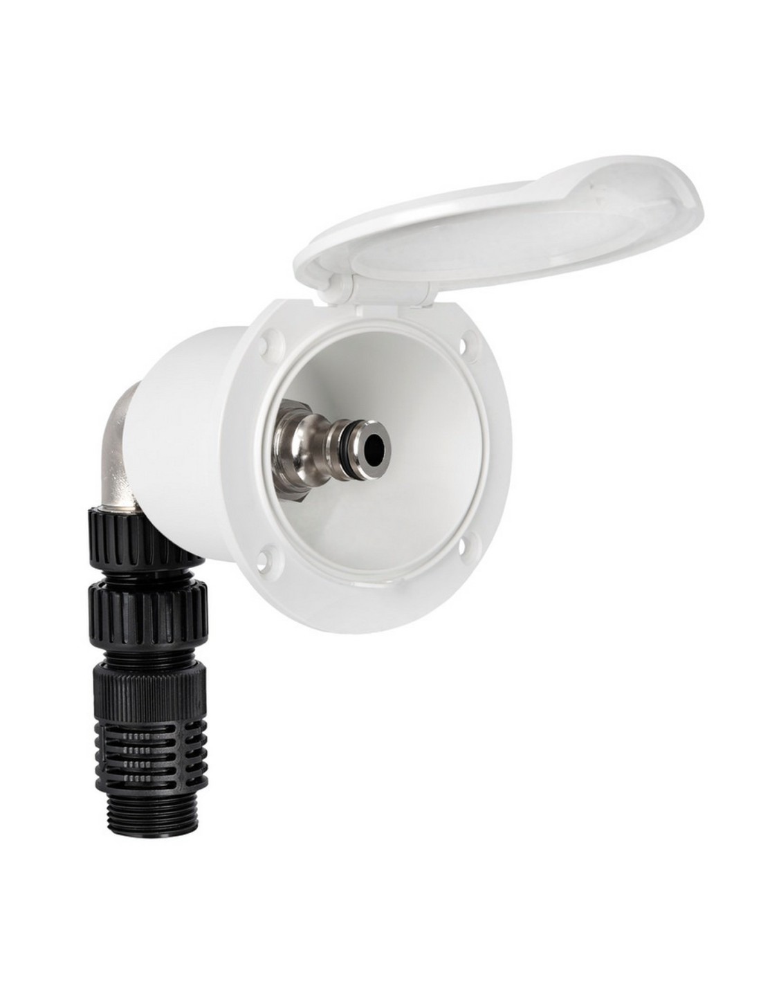 Questo riduttore è progettato per l’immissione di acqua dalla banchina all’impianto di bordo. Il collegamento al tubo dell’acqua di banchina avviene tramite un raccordo a scatto tipo giardinaggio (vedi codice 36.189.02), mentre l’uscita è dotata di un filetto maschio da 3/4". I riduttori di pressione con elemento in plastica, come questo, non abbassano la pressione, ma ne limitano la portata. Ciò permette all'acqua di entrare nell’impianto gradualmente, evitando stress sulle tubazioni. Se l’impianto rimane collegato alla banchina, la pressione si allinea automaticamente a quella di terra.