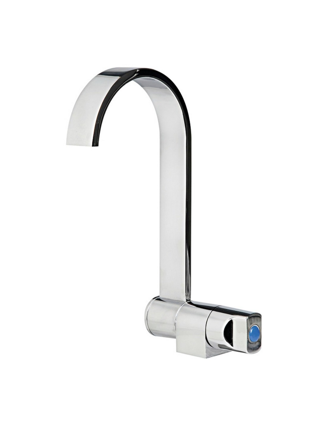 In ottone cromato. Può essere montato all'interno del lavello al fine di avere il piano completamente liscio.