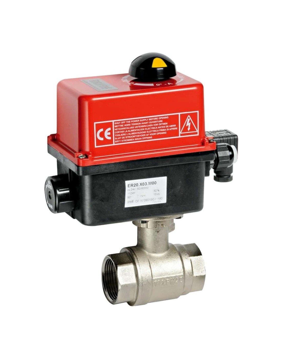 Fabbricate in ottone nichelato, passaggio totale con servomotore elettrico reversibile. Tempo di rotazione 14 secondi. Comando manuale di emergenza conformi ISO228. Complete di pannello di controllo ON-OFF a distanza e fusibile di sicurezza, comanda fino a 10 valvole contemporaneamente.
