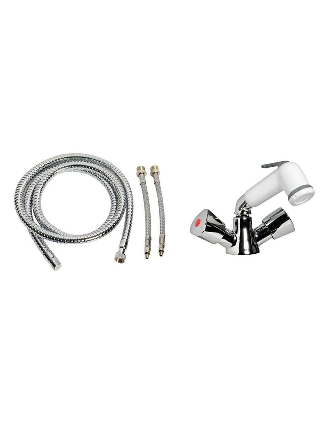 In ottone cromato con doccetta estraibile girevole a getto variabile.