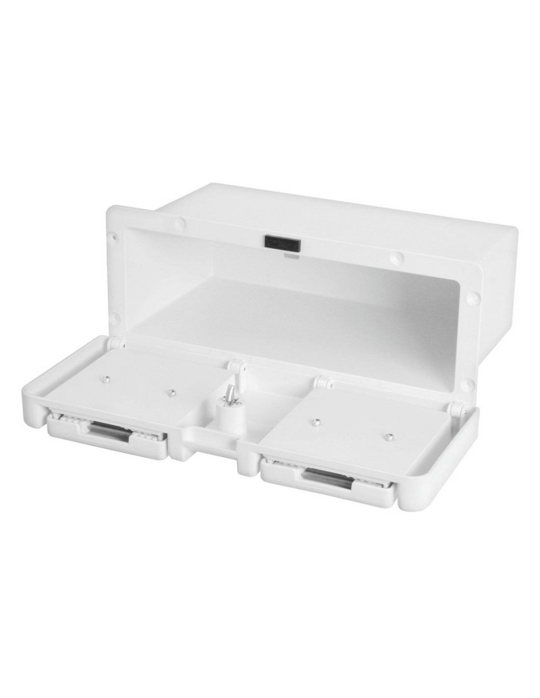 Fabbricato in plastica bianca, completo di serratura a pulsante con chiave.