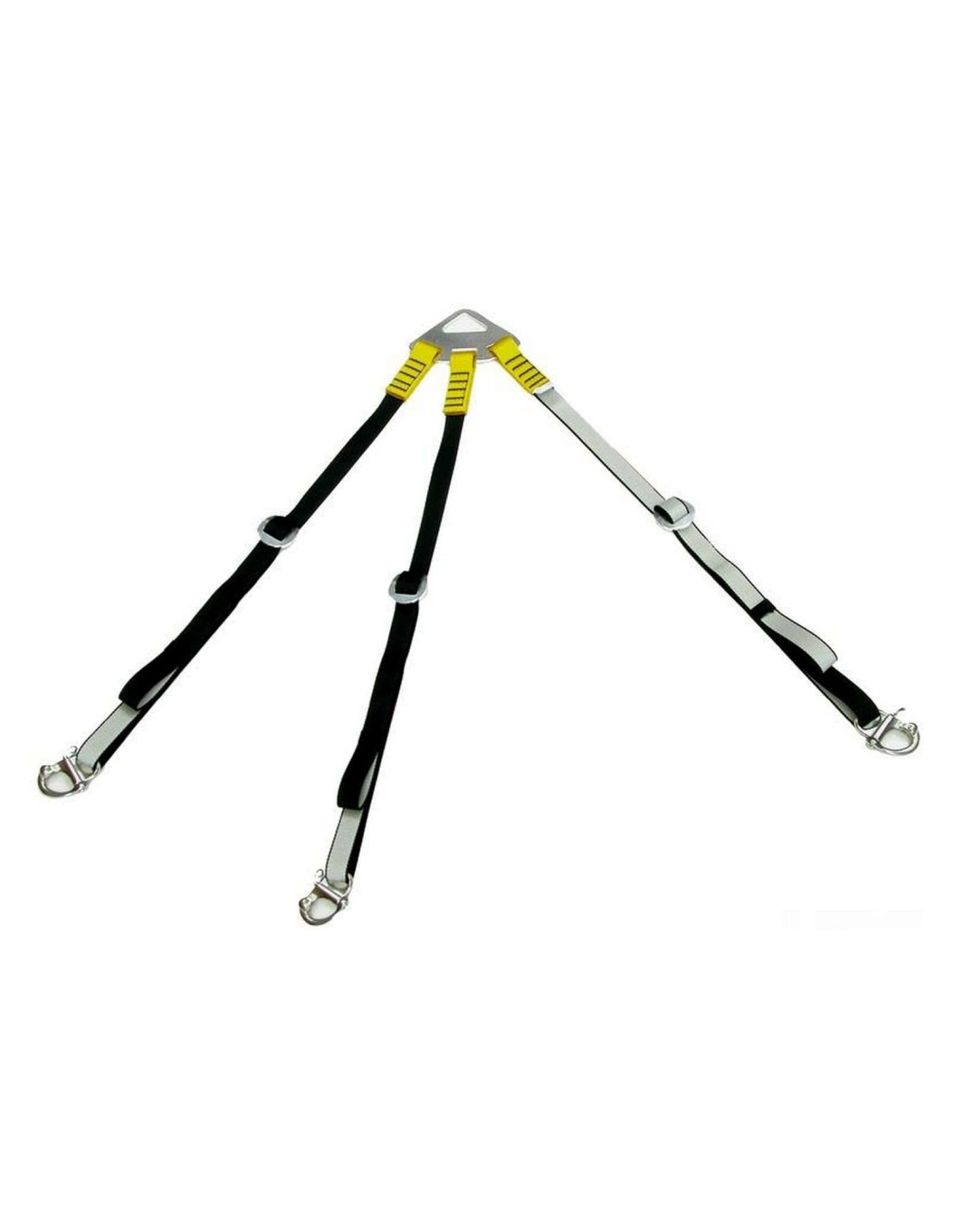 Di alta qualità, resistente UV per sollevamento tender di qualsiasi tipo. Piastra di sospendita e fibbie di regolazione in alluminio alta resistenza anodizzato. Moschettoni aggancio in acciaio inox AISI 316 ad apertura rapida. Carico max KG 400. Universali per qualsiasi gommone, in quanto regolabili. Articolo brevettato e certificato CE.