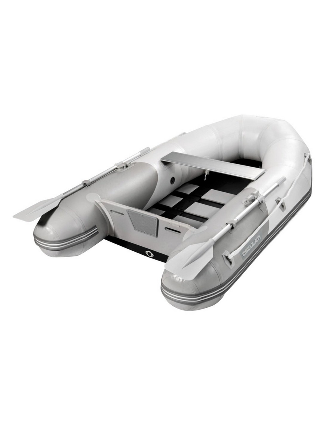 Versione pieghevole, con fondo piatto irrigidito da stecche trasversali. Dei modelli disponibili risulta il più compatto una volta piegato, ideale per chi ha problemi di stivaggio. Fornito completo di remi, gonfiatore, kit riparazione e borsa trasporto.