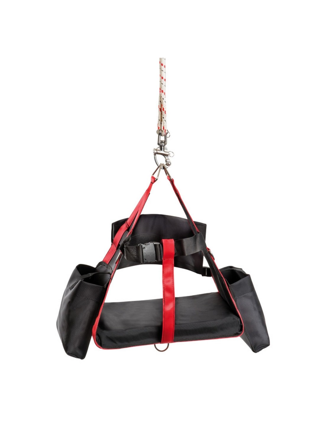 Realizzato in tessuto nylon ultra resistente, con nastri di sostegno a sviluppo totale perimetrale. Seduta imbottita (spessore 50 mm), di grandi dimensioni (45 x 30 cm) per il massimo confort. Provvisto di due grandi tasche laterali da 26 x 23 cm. Completo di sacca traspirante per lo stoccaggio.