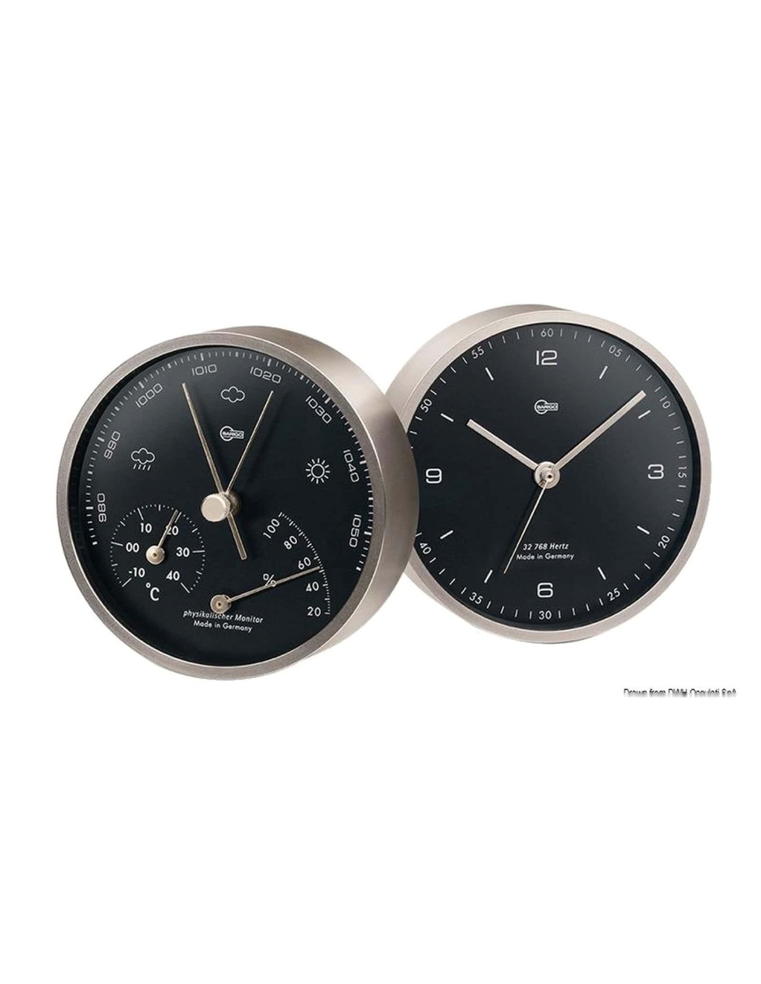 Carcassa in ottone satinato/nichelato scuro, quadrante nero.