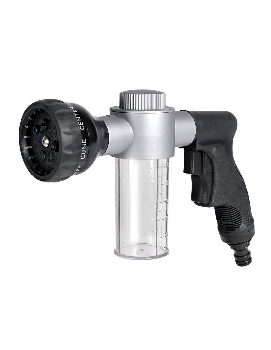 Completa di serbatoio per erogazione automatica shampoo. Maniglia in morbida gomma. Completa di raccordo a scatto universale.