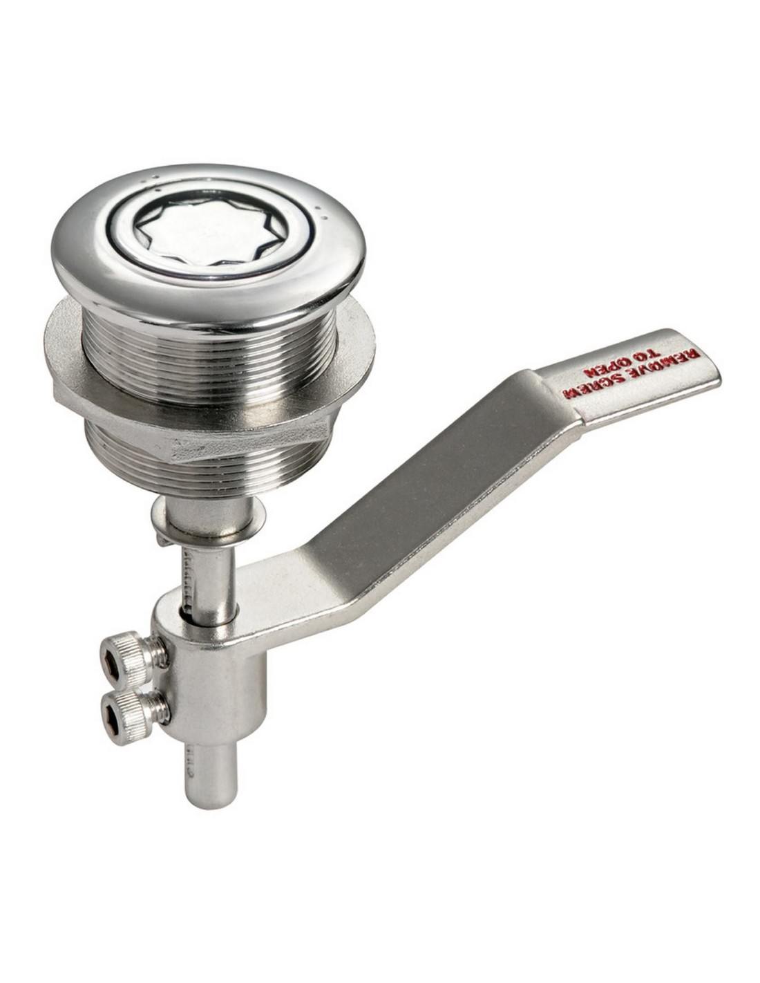 Quando non in uso rimane completamente a filo grazie ad un sistema a molla che chiude il foro a stella. Rotazione di 90°. Realizzato in acciaio inox AISI 316.