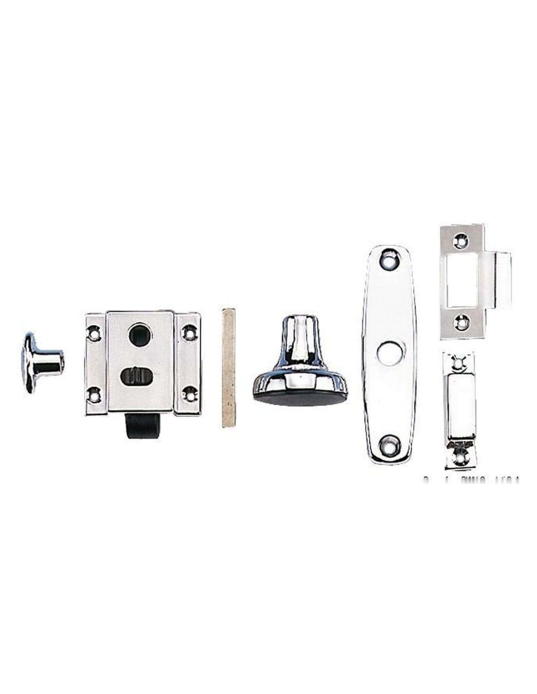 In ottone cromato + nylon cromato + acciaio inox, da appoggiare, con blocco dall’interno e scontro a incasso o a cassetto. Ideale per WC e cabine.