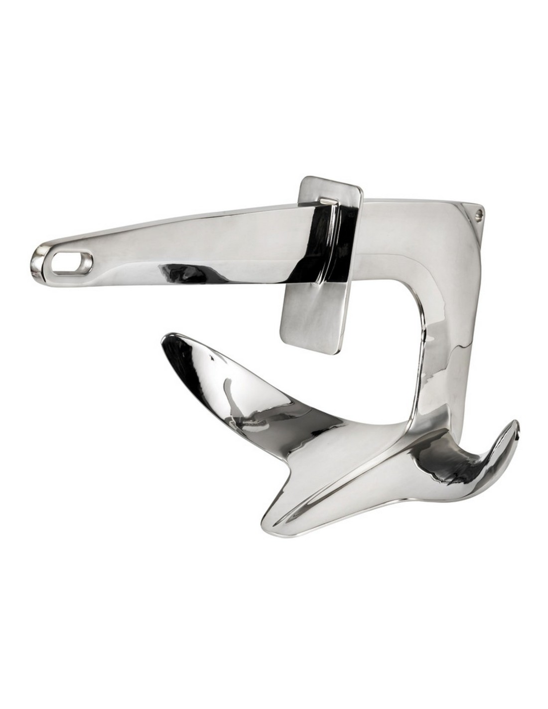 Ancora con piastra di blocco e chiusura per prue basse tipo gommoni o prue rovesce.