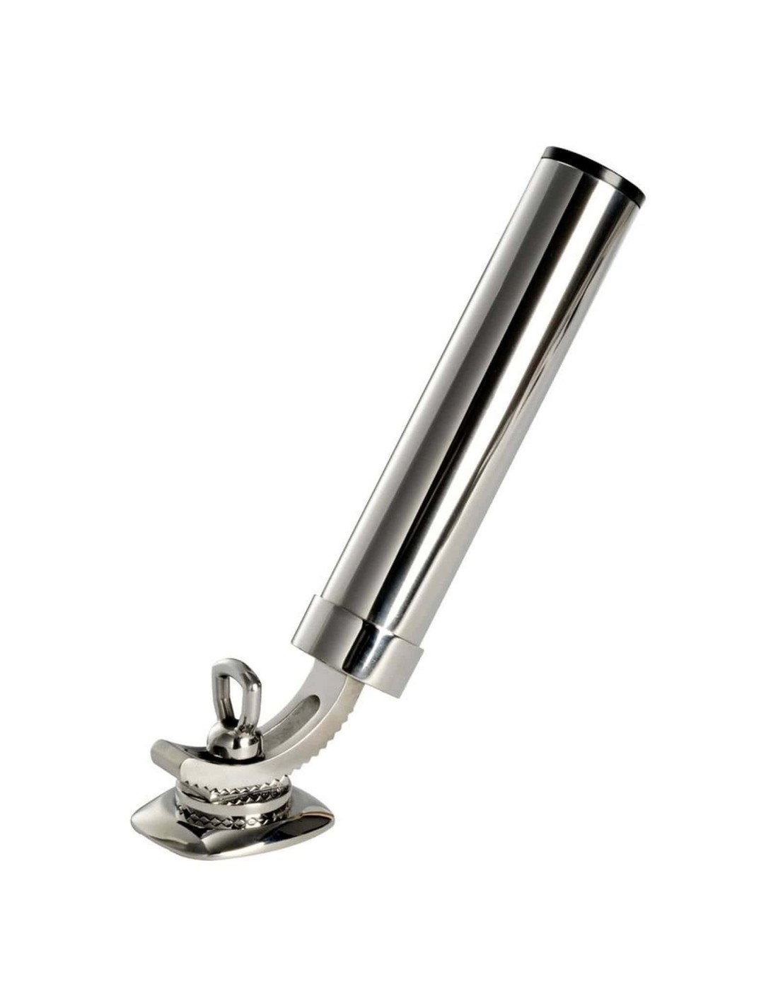 Completamente in acciaio inox AISI 316 lucidato a specchio, con boccola in plastica di protezione. Regolabile da 90° a 15°.