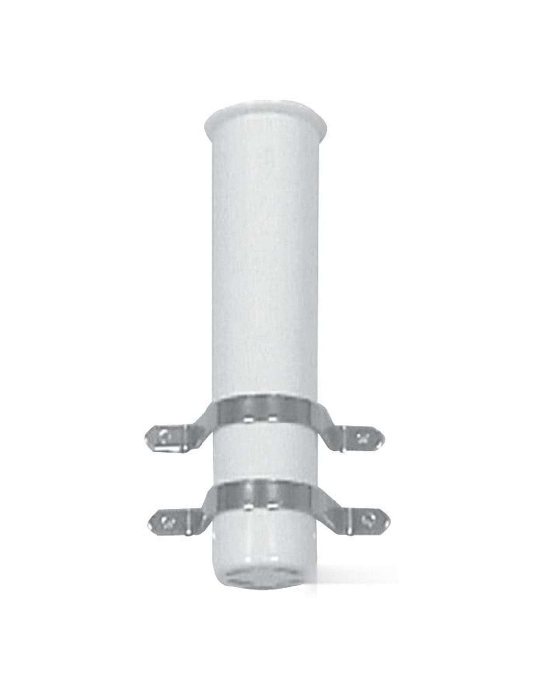 In plastica bianca, con fissaggio tramite cavallotti in acciaio inox.