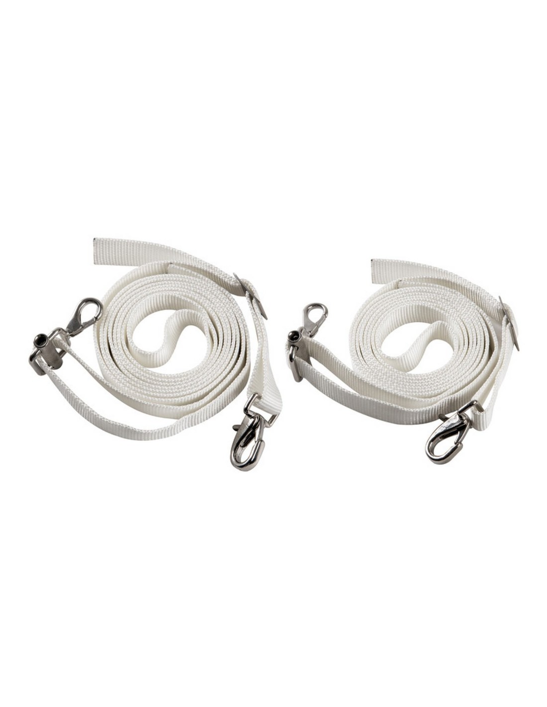 Formato da un nastro di larghezza 25 mm e con lunghezza 3 m (utile 2,90 m). Un'estremità con moschettone e cinghia per regolazione fissa e una con moschettone di tensionamento. Venduto in coppia in confezione espositiva.