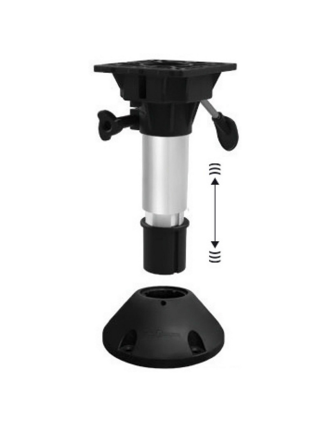 Regolabile in altezza tramite molla a gas. Dotato di sistema di ammortizzatore interno (Shock Absorber) per assorbire l'impatto della barca con le onde. Estraibile dalla base Ø 228 mm. Tubi alluminio anodizzato. Testa in nylon/fibra di vetro con foratura universale.