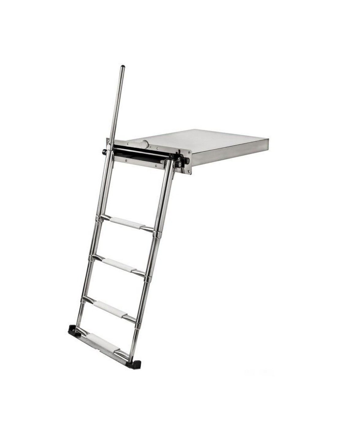 Formata da una scaletta telescopica a 4 gradini con maniglia di risalita integrata per facilitare la risalita a bordo.