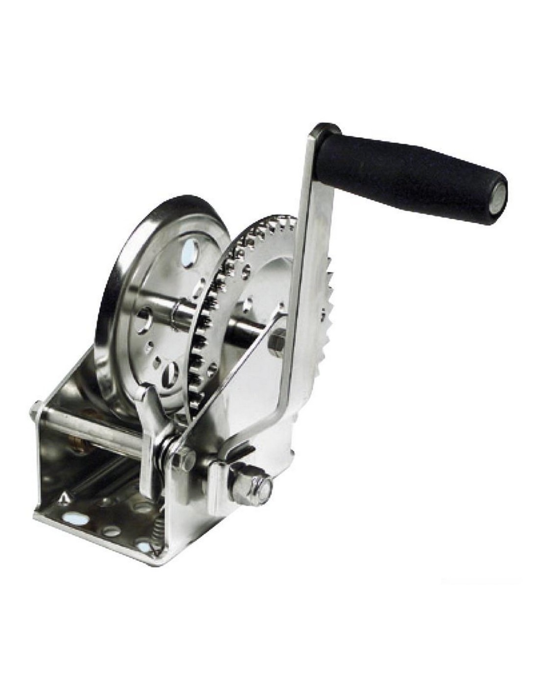 Completamente in acciaio inox ad alta resistenza, con boccole di rotazione autolubrificanti. Finitura con lucidatura elettrolitica. Certificato TÜV Germany. Il carico massimo di trazione è riferito all'utilizzo con un solo giro di cavo sul tamburo.