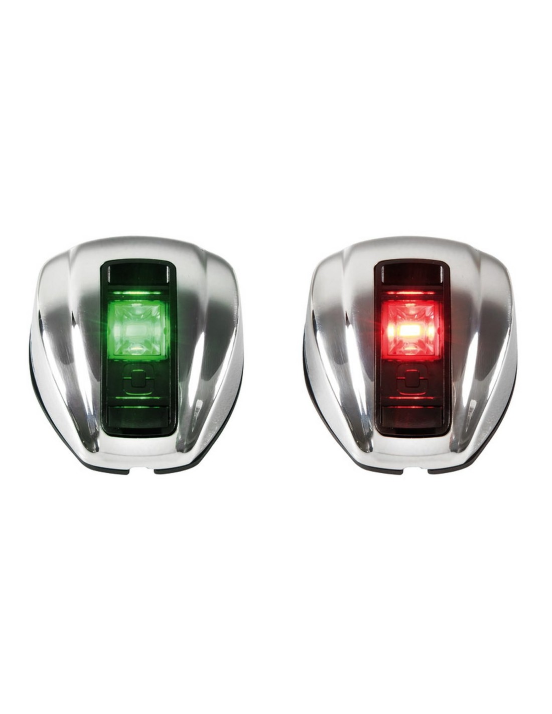 Corpo in policarbonato nero e scocca in acciaio inox AISI 316 lucidato a specchio. Di facile installazione sia sullo scafo sia sulla coperta della barca. Approvate RINA in accordo al regolamento COLREG72. Adatte per imbarcazioni fino a 20 m con visibilità fino a 2NM.