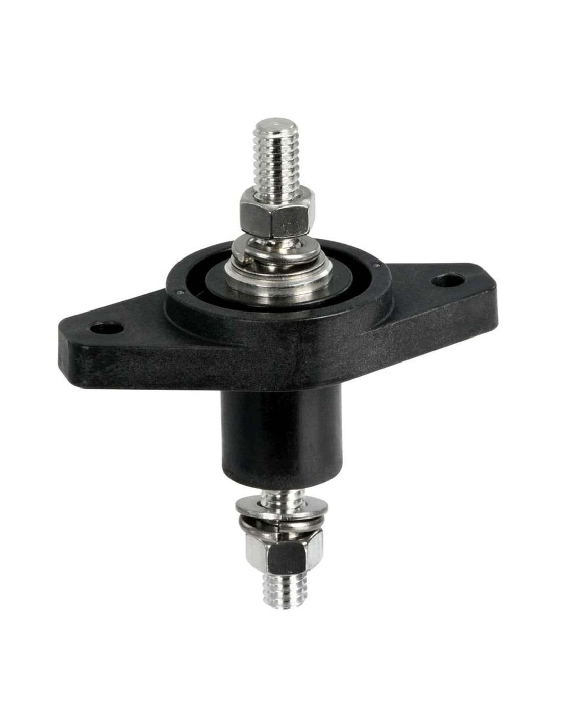 Adatto per alti amperaggi. Base in nylon/fibra vetro. Perno e dadi in acciaio inox.