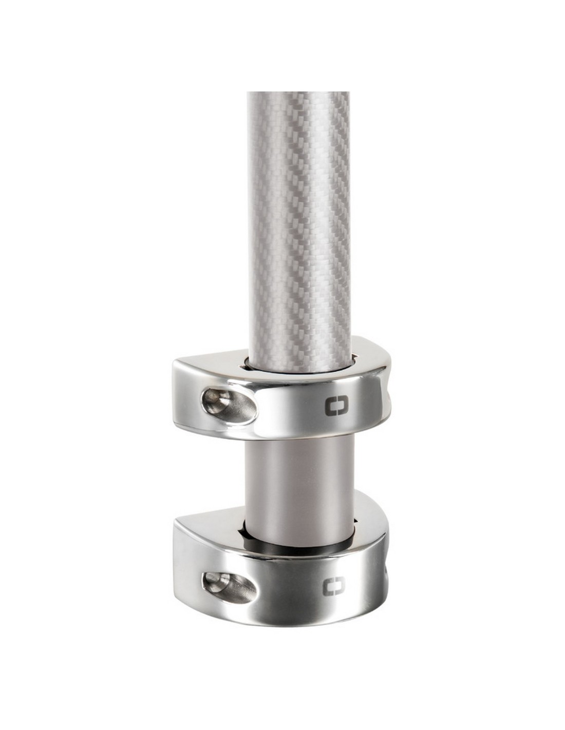 Formata da un doppio supporto, inferiore e superiore, a parete per palo tendalino. Il palo ruota di 90° all'interno del supporto e rimane bloccato. Sistema ad alta finitura estetica grazie alla superficie lucidata a specchio e logo frontale.
