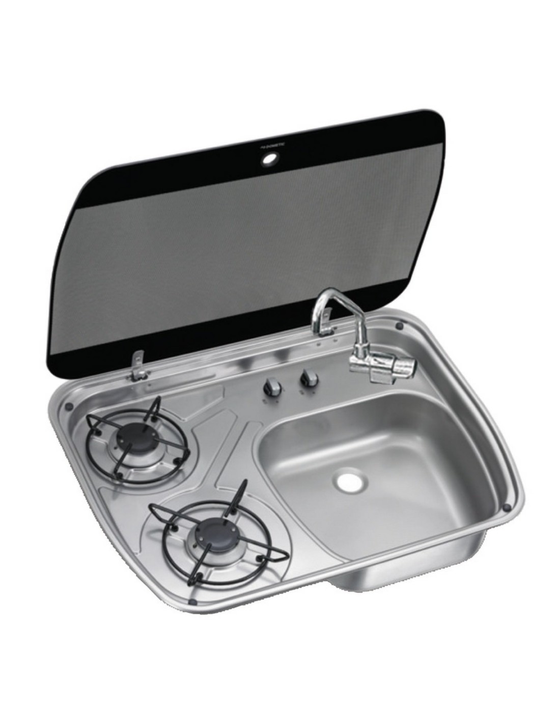 Piano cottura in acciaio inox SMEV/DOMETIC con coperchio in vetro temperato fumé