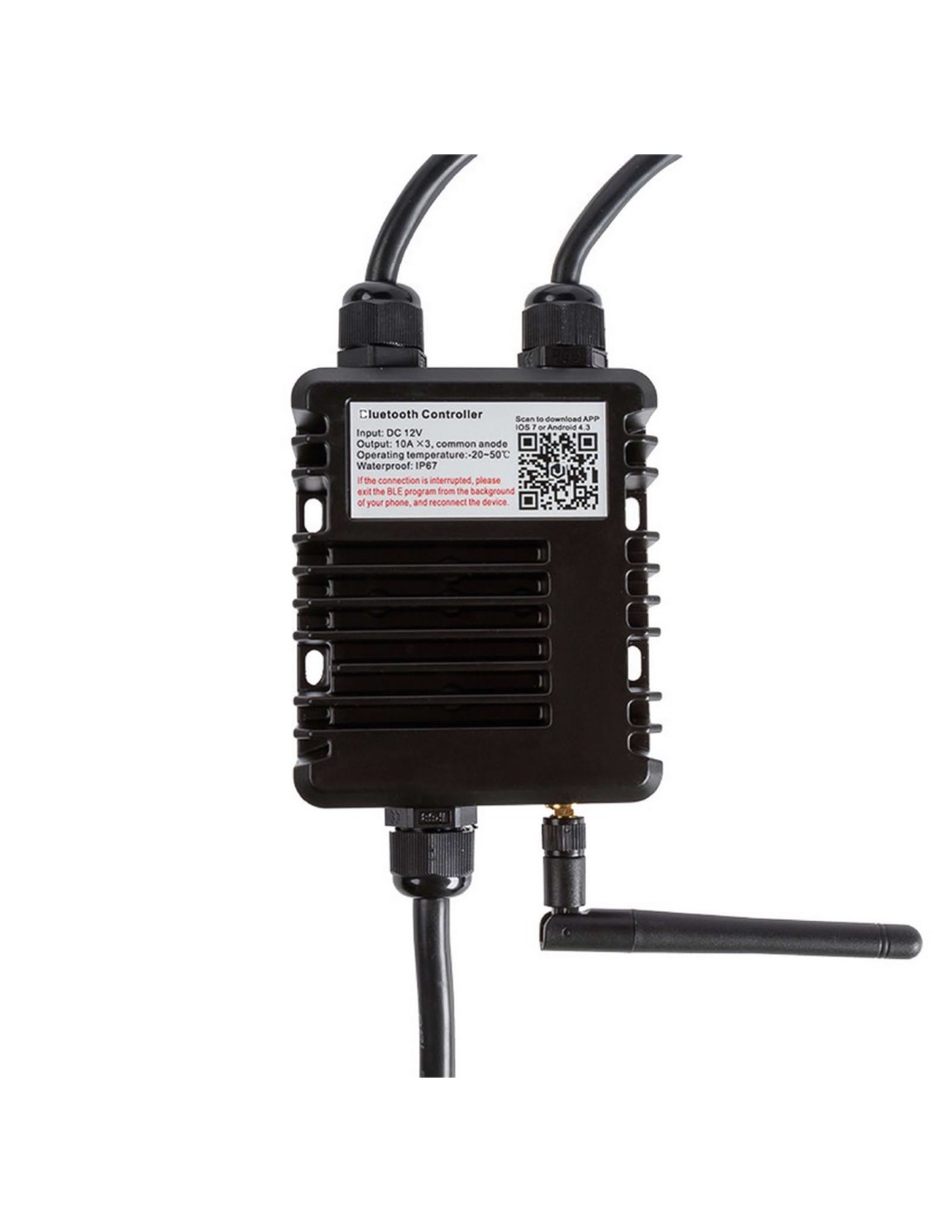 Controller RGBW 12/24 V, capacità max 360 W a 12 V e 720 W a 24 V. Il controller 13.237.50 permette di selezionare e mixare i 3 colori base rosso/verde/blu, ottenendo varie tinte ed in più il colore bianco, inoltre consente di ritmare la luce seguendo la musica di bordo via bluetooth.
