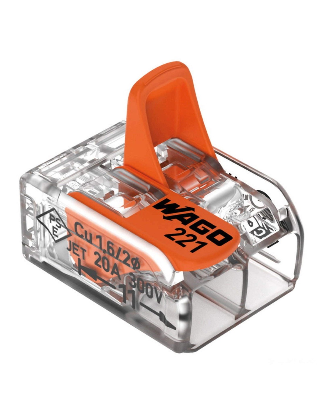 Sono ideati per collegare conduttori rigidi, semi-rigidi e flessibili e sono facili da applicare: basta alzare la leva, inserire il conduttore e abbassare la leva. I morsetti WAGO® garantiscono un impianto elettrico più veloce e un’installazione più sicura. I supporti di montaggio permettono l'installazione dei morsetti di giunzione serie 221 (2, 3 e 5 poli) sia in orizzontale che in verticale, il supporto si può fissare in modo semplice, direttamente sulla guida DIN oppure con viti per montaggio diretto. I conduttori possono essere comodamente collegati sia prima che dopo il montaggio dei morsetti nel supporto di fissaggio. Max temperatura ambiente 85°C.