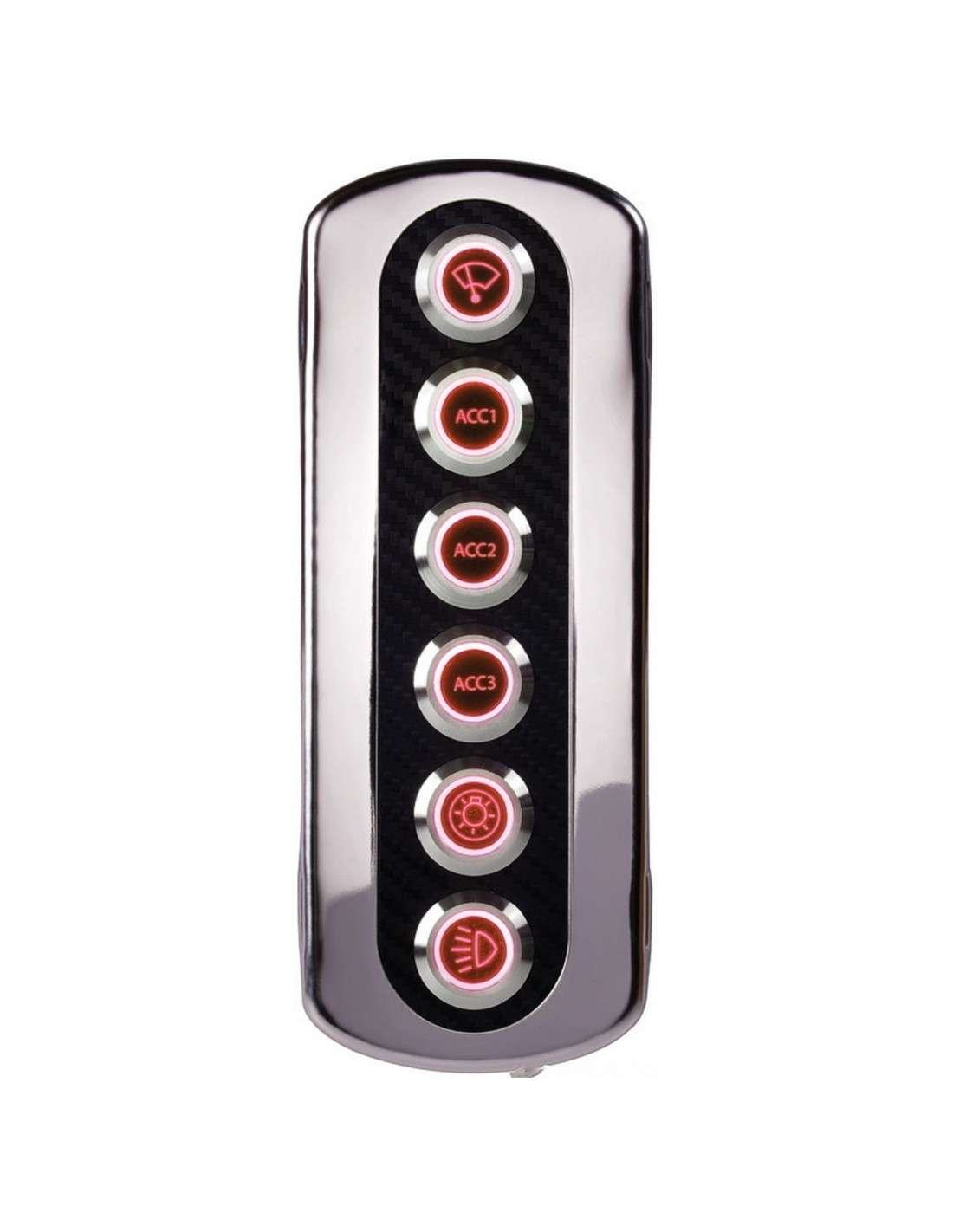Pannelli eleganti in fibra di carbonio e acciaio inossidabile 316 con interruttori a pulsante in acciaio inossidabile da 20A. Progettato con cura con lunetta lucida nascosta da viti, etichette retroilluminate sul pulsante e finitura del pannello in fibra di carbonio 3D. Sono incluse 40 etichette adesive assortite. Protezione IP66 contro potenti getti d'acqua da tutte le direzioni. Guarnizione impermeabile inclusa.