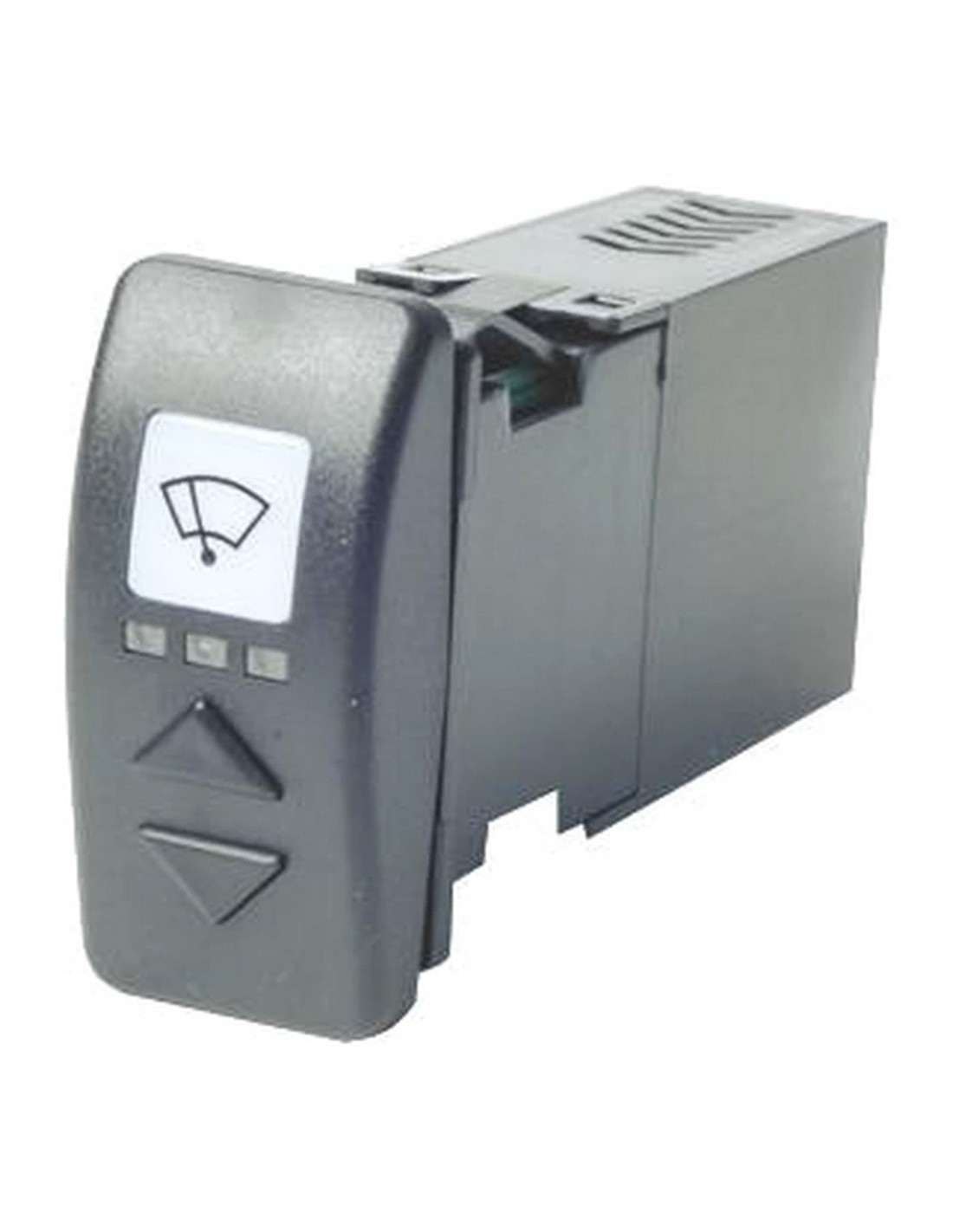 Voltaggio universale12/24 volt, retroilluminazione tramite LED, look e dimensioni incasso uguali agli interruttori USA CARLINGSWITCH. Versione per 1 tergicristallo Funzioni: acceso / spento; 3 livelli di intermittenza indicati dai LED; 2 livelli di velocità (ove previste dal tergivetro); ciclo di lavaggio; ritorno automatico a 0 della spazzola; ingresso dimmer per variare l'intensità dell’illuminazione. Versione 2 tergicristalli Funzioni: acceso / spento; sincronizzazione automatica dei 2 tergicristalli; possibilità di azionare solo uno o l’altro tergicristallo; 3 livelli di intermittenza; 2 livelli di velocità (ove previste dal tergivetro); ciclo di lavaggio; ritorno automatico a 0 della spazzola; ingresso dimmer per variare l'intensità dell’illuminazione.