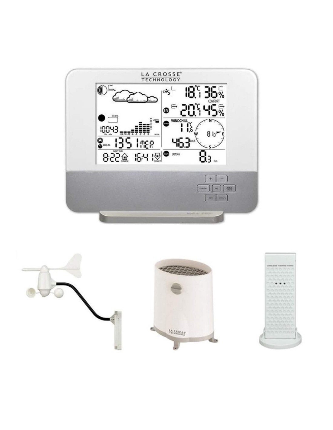 Completa di sensori esterni temperatura, umidità , anemometro, pluviometro radiocontrollati senza fili.