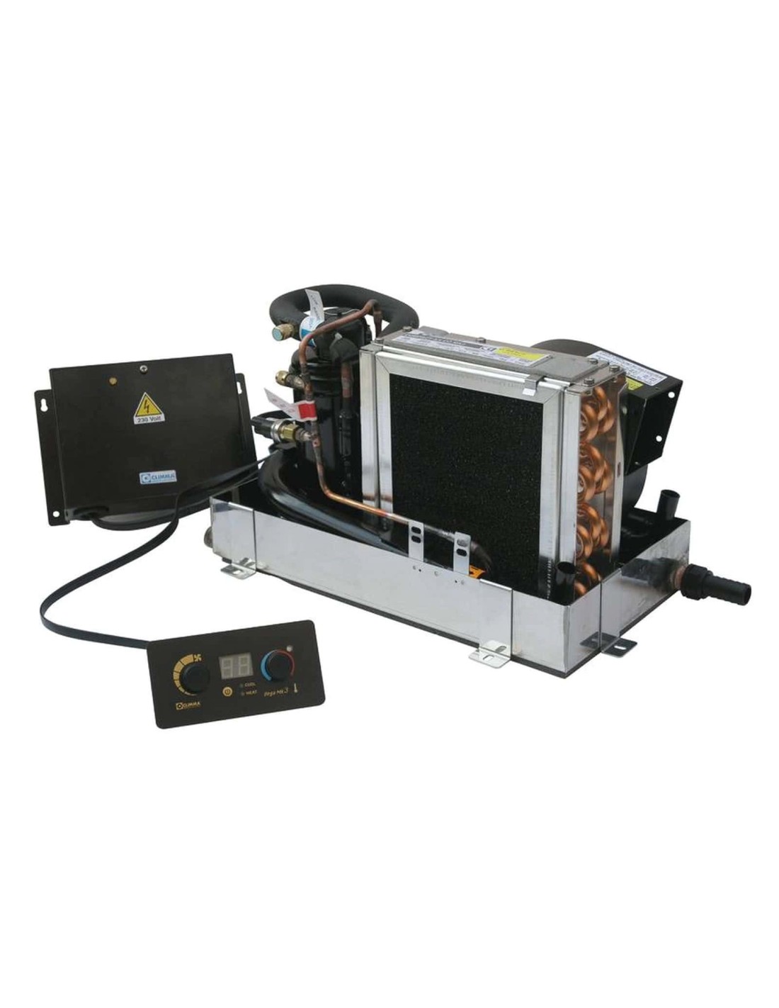 Il più piccolo condizionatore marino sul mercato. Perfetto per condizionare una piccola cabina. Grazie al basso consumo può essere installato anche su piccole imbarcazioni non provviste di generatore o presa banchina (necessaria l'installazione di un inverter opzionale da minimo 800 W continui). Fornito completo di display di controllo.